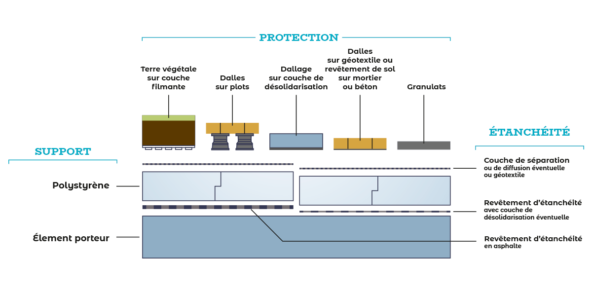 Focus toiture terrasse : cette mise en œuvre améliore la durabilité de l’étanchéité et le confort d’été, en limitant les chocs thermiques sur la dalle.